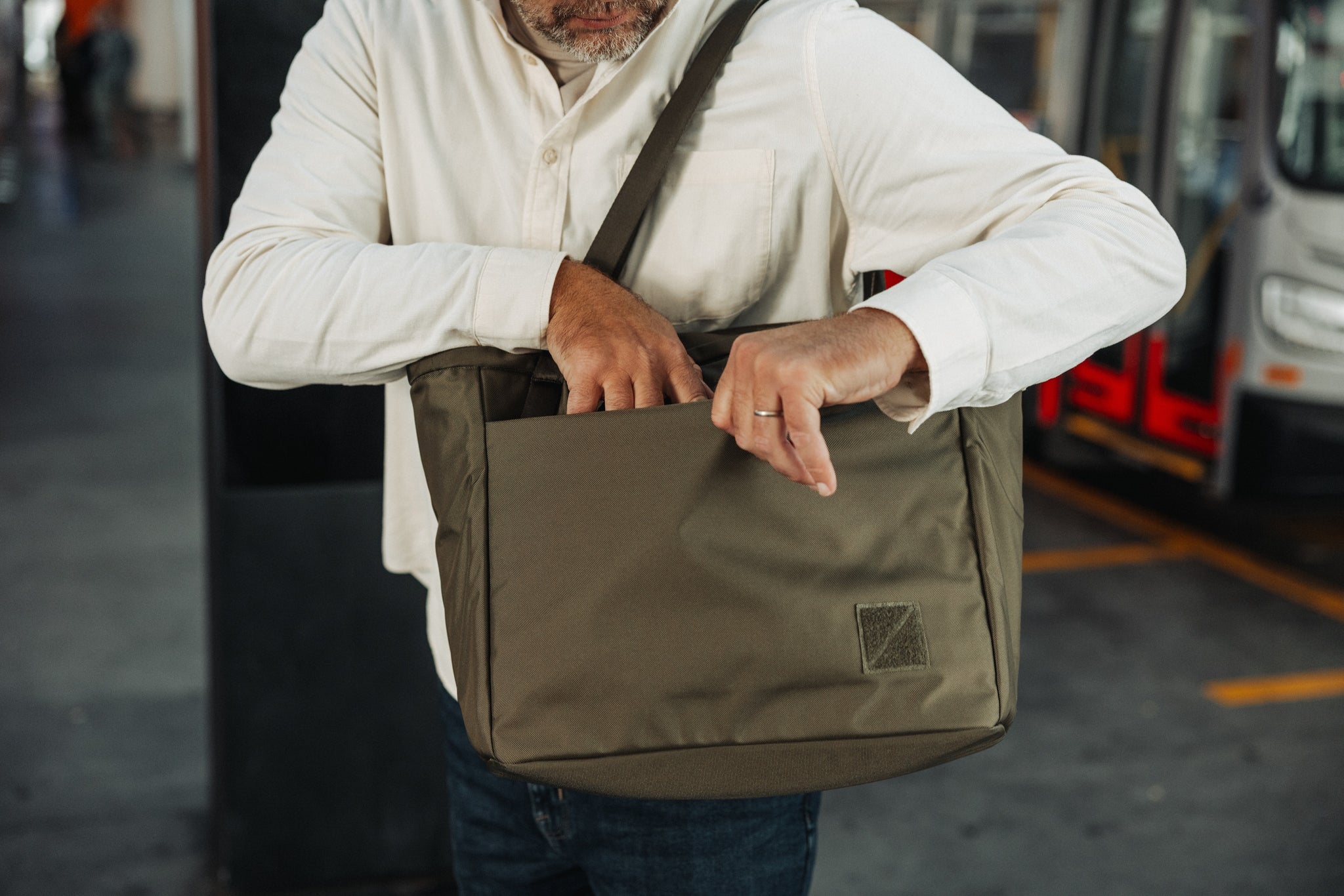 CDT24のメイン開口部には円柱型マグネットを2列配置。しっかり閉まるのに柔軟性があり、壊れる心配もありません。持ち運び中はマグネットがバッグをしっかり閉じて荷物の安全と防水性を確保。軽く引けば簡単に開くので、トートバッグ特有のアクセスのしやすさ・快適さはそのままです。